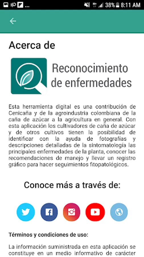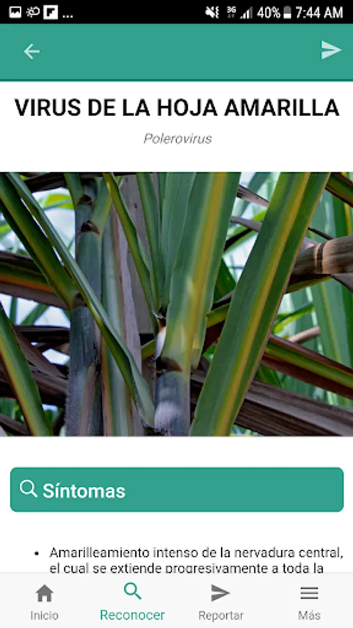 A tool that facilitates the recognition of diseases that affect the cultivation of sugar cane in Colombia through the identification of symptoms and their differentiation with other factors that cause similar symptoms in the crop.