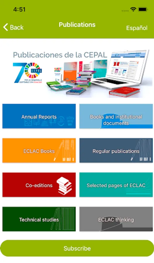 Application that allows access to the outstanding publications of the Economic Commission for Latin America and the Caribbean of the United Nations, organized into collections and grouped by type of publication such as: Annual Reports, ECLAC Books, etc.