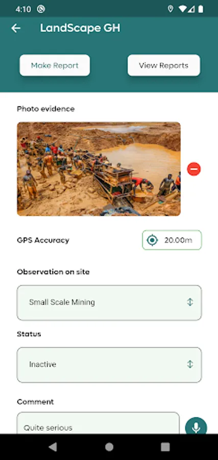 Mobile application for map and reporting illegal and small-scale mining activities in Ghana