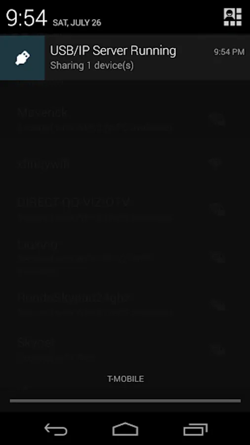 Per the USB/IP specification, this app listens for TCP connections on port 3240. While the service is running, it will hold a partial wakelock and Wi-Fi lock to prevent the device from sleeping or disconnecting while serving USB devices on the network.