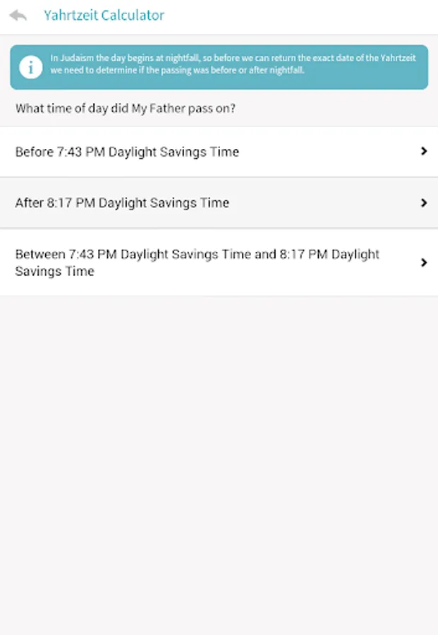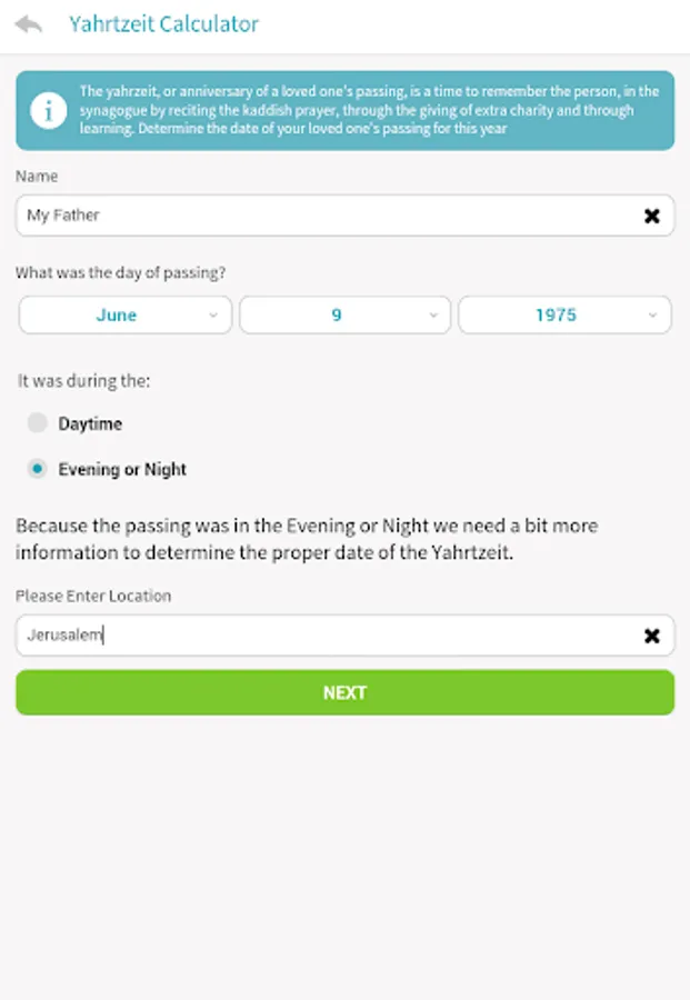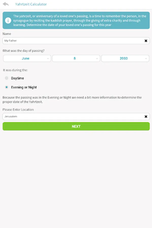 · Use the “My Yahtzheits” feature to save key family Yahrtzeit dates and be notified before upcoming Yahrtzeits.