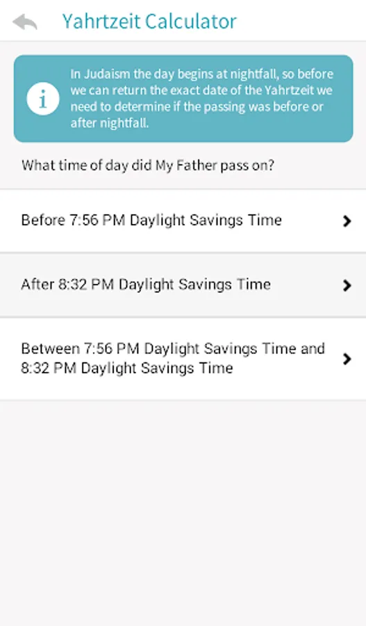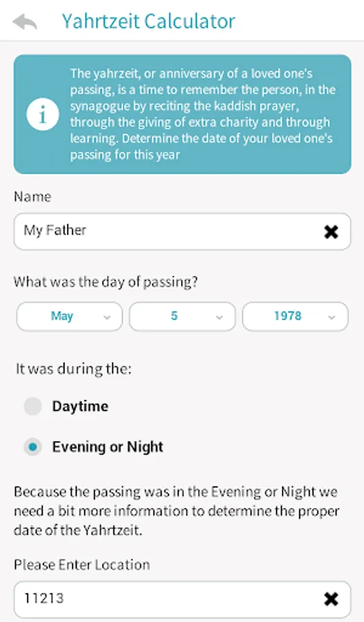 · Use the built-in Yahtzheit calculator to determine when to say Kaddish.