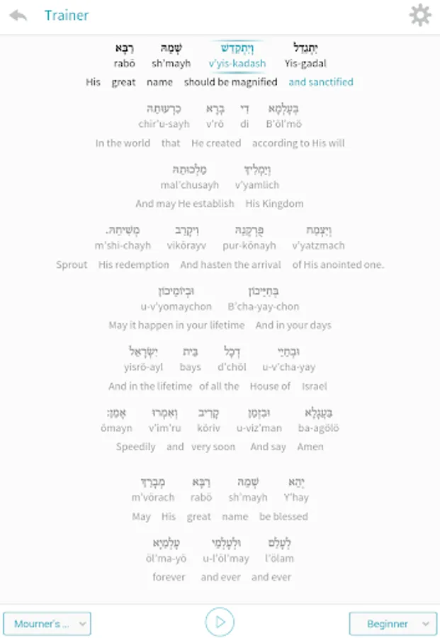 · Read-along and learn to say Kaddish at your own pace.