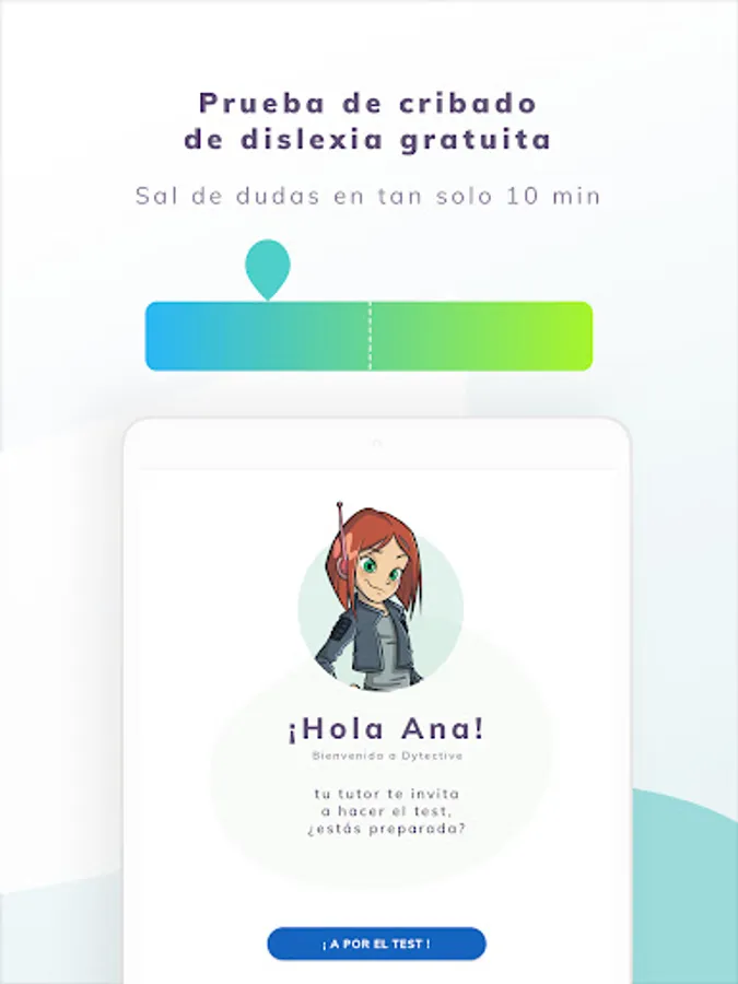 You will also have access to the Dytective screening test that allows you, in just 15 minutes, to detect if you are at risk of having reading-writing difficulties. It is not a diagnosis, only an indicative screening test.