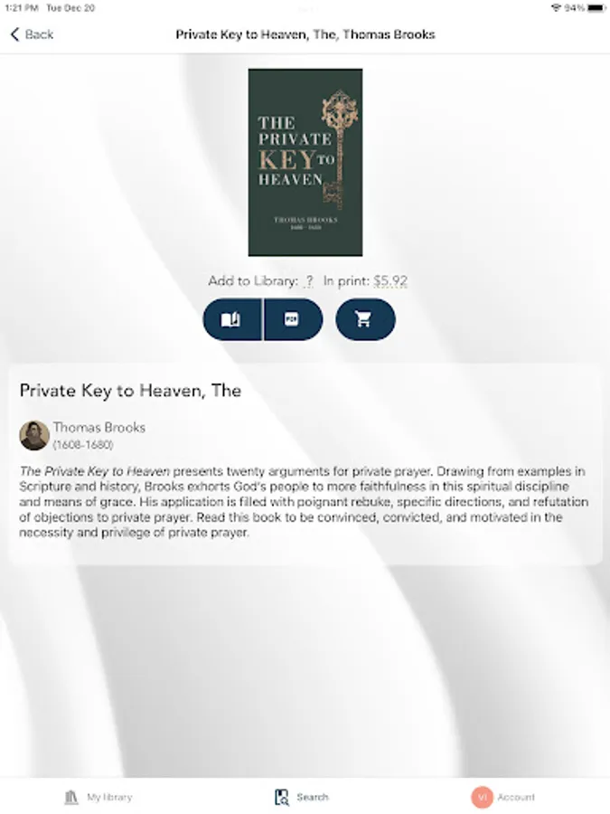 Enjoy free Christ-centered literature from prior centuries in eBook and audio formats. Order books in print as well, worldwide! (Monthly limit applies.) Hundreds of titles are available from the Reformation and Puritan tradition.
