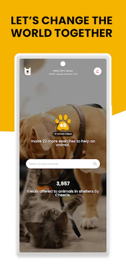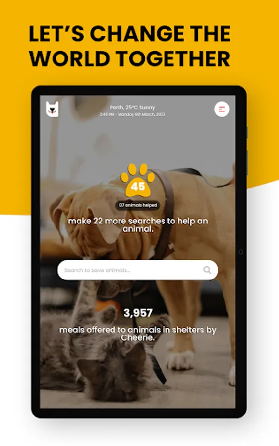 All you have to do is download the Android app. Then the next time you need to search for something, start using Cheerie… and now every time you search, we will donate to an animal charity at no cost to you.