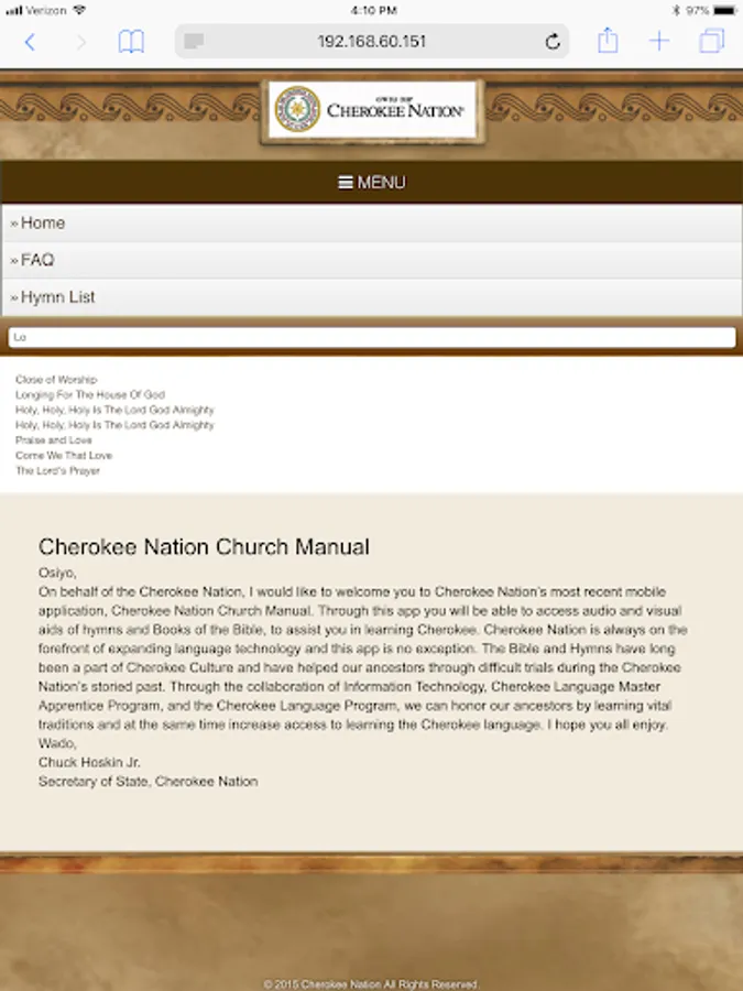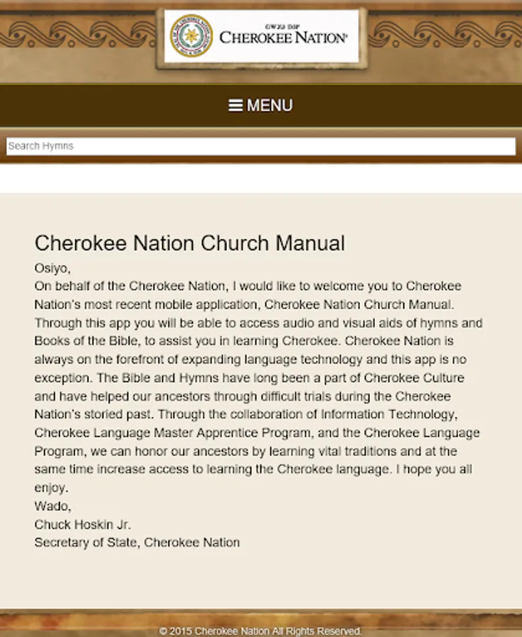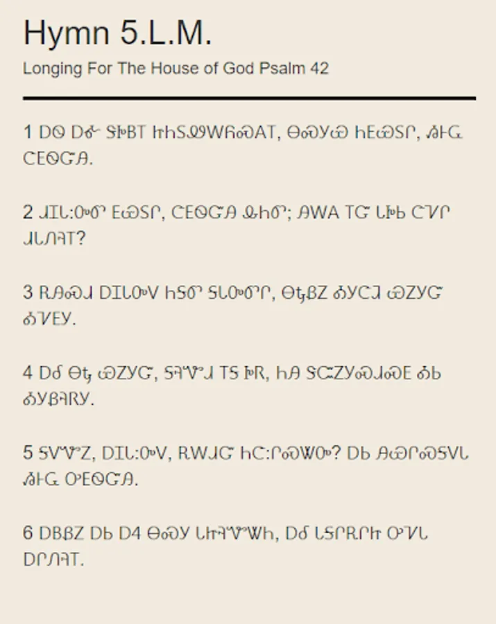Read and follow along with Cherokee Hymns and gospels. View them in syllabary or phonetic.