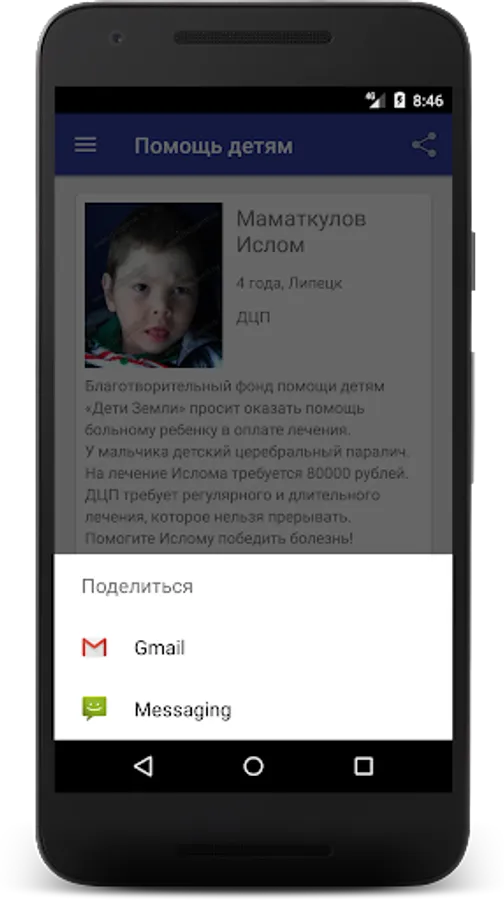 Appendix "Helping Children" was established Charitable Foundation for Children "Children of the Earth." Our application - a handy tool for charities. The main task - to help a charity for sick children, work with child care, purchase of medicines and medical equipment to needy children, other programs related to childhood and family support.