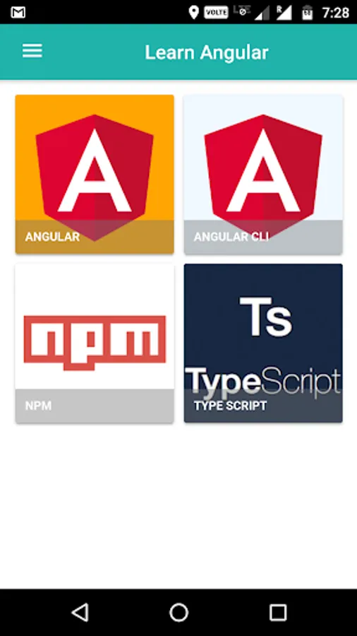 Learn Angular is a simple tutorial app designed to teach Angular4 in a simple and easy way. Additionally, you can learn the basic usage of Angular CLI, NPM and Typescript.