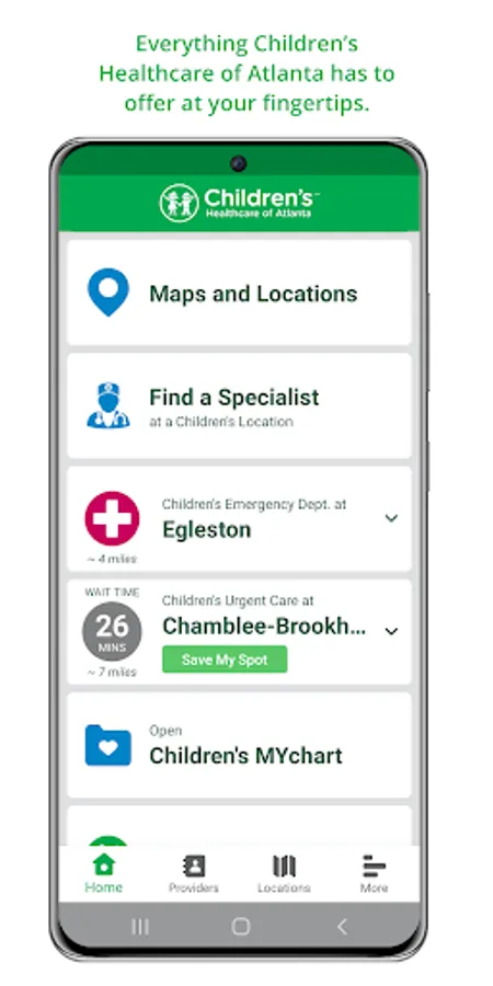 The Children's Healthcare of Atlanta app is designed to give families easy access to their child’s common healthcare needs, allowing you more time to focus on what’s important – your kids. Whether its saving your spot in line at a nearby Urgent Care Center, accessing your child’s medical records, finding a pediatric specialist closer to home, or navigating your way through our locations, the Children’s app makes these tasks available from the palm of your hand.
