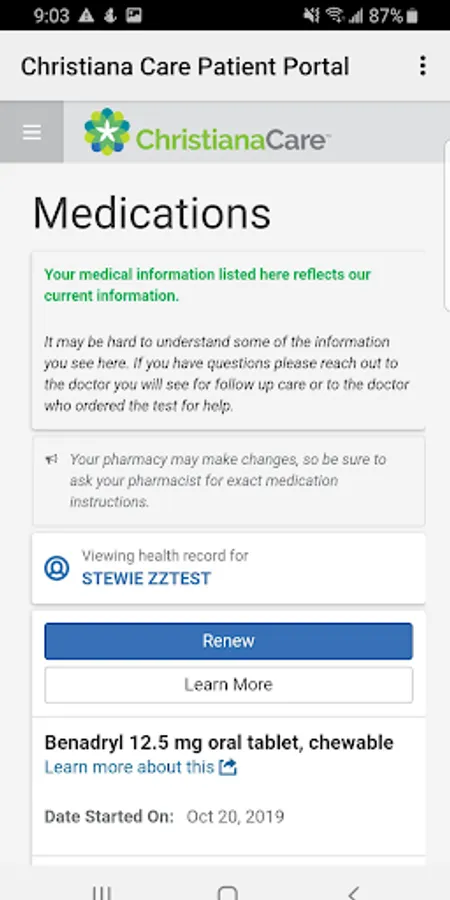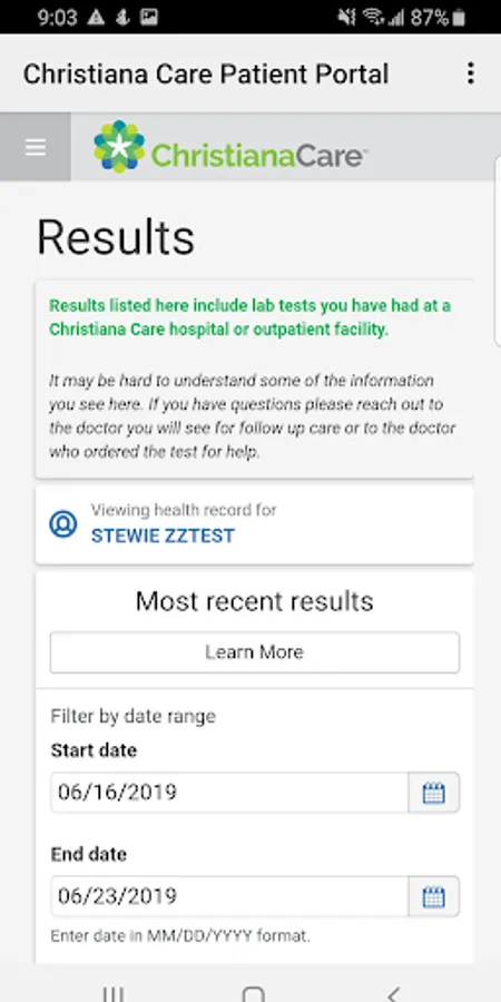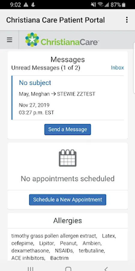 The Christiana Care Patient Portal is a free, secure online application that gives patients the ability to access portions of their Christiana Care health records including diagnostic testing results and provider notes. Patients are also able to request an appointment for a doctor’s office service, view upcoming appointments, request a prescription refill, and send a message to their healthcare provider.