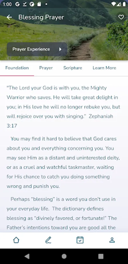 - A Prayer Library, fully available both in English and Spanish. Each prayer contains: the text of the prayer, the foundation of the prayer, the scriptural references for each prayer, and what we call Prayer Experience - an immersive feature to dive into each prayer through an audio recording.