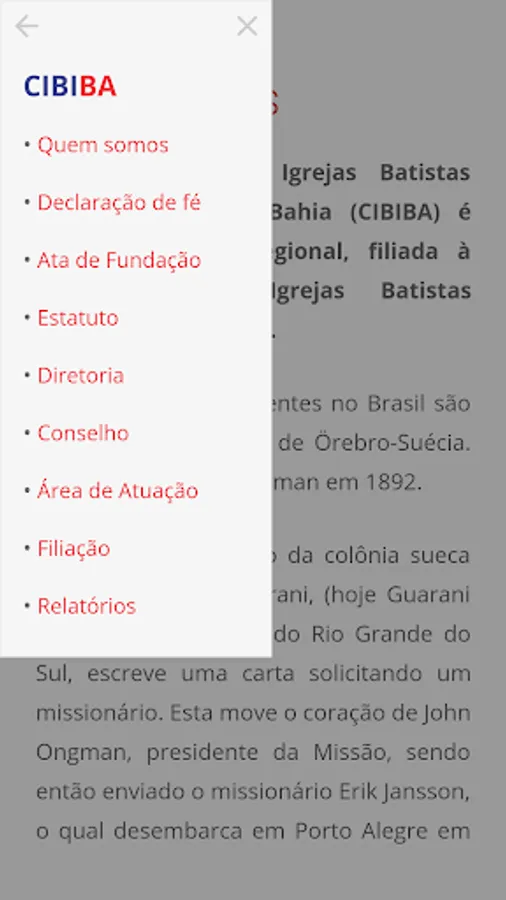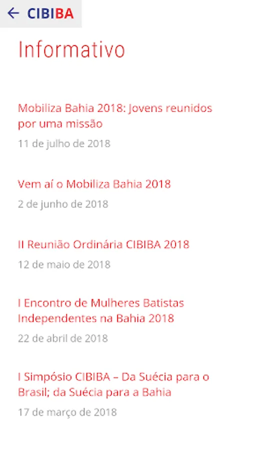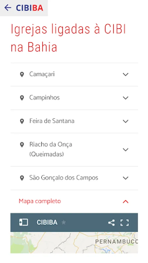 The Convention of Baptist Churches Independent in Bahia (CIBIBA) is a Regional Convention, affiliated to the Convention of Baptist Churches Independent (CIBI).