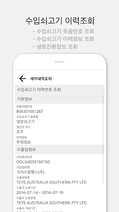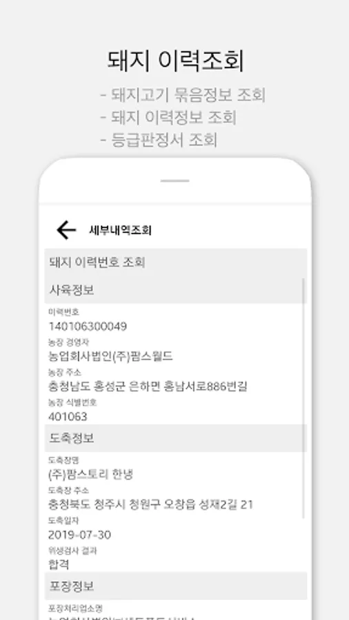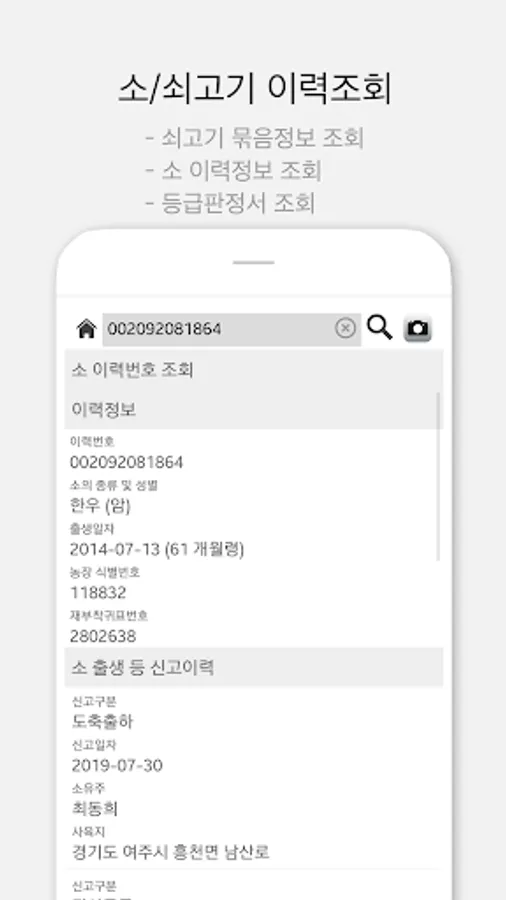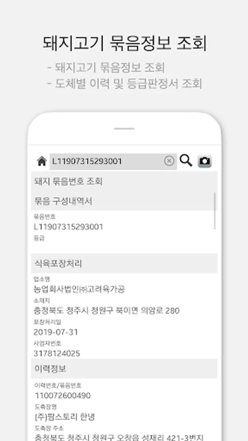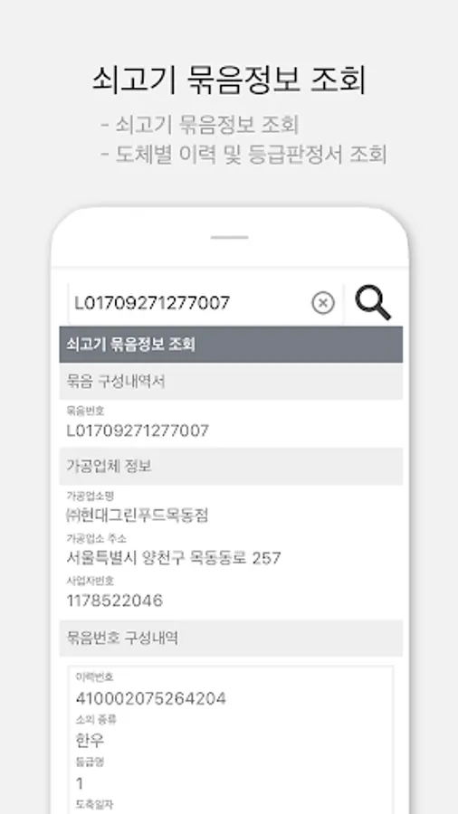 -History and bundle number inquiry of domestic livestock products (beef, pork)