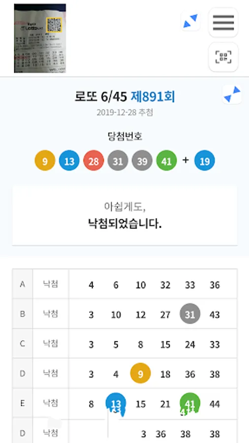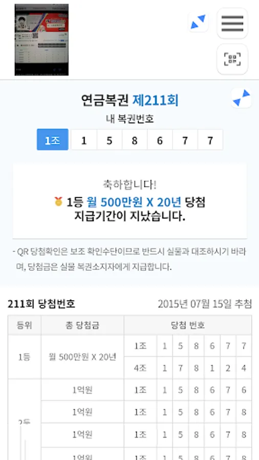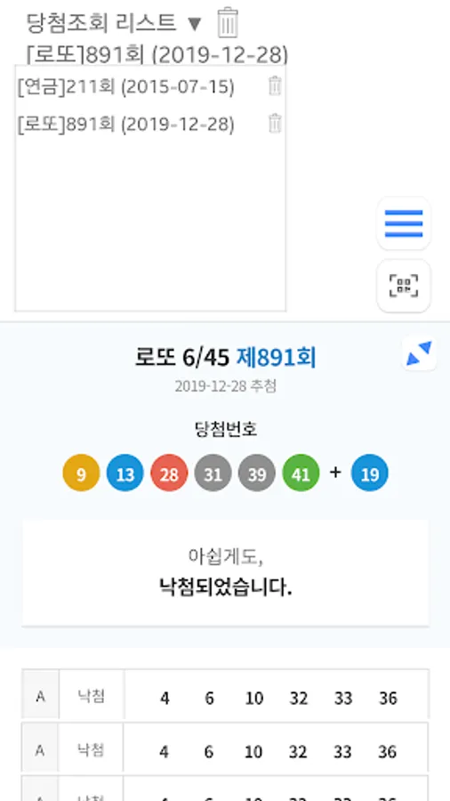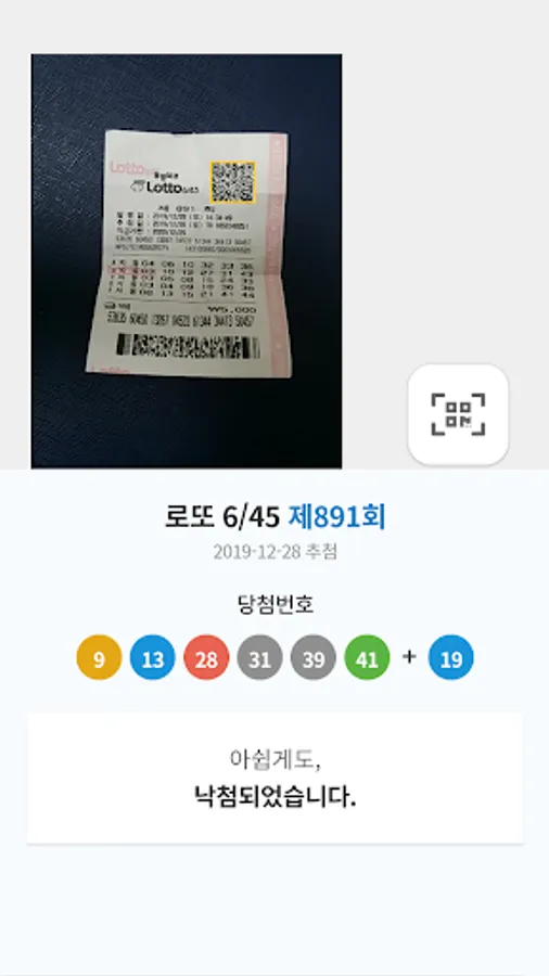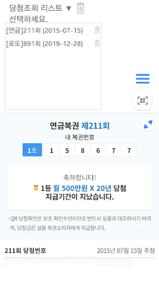 It is an app that can be used conveniently because you can scan in advance after purchasing a lotto or pension lottery and check whether you have won without a receipt on the day of the lottery.