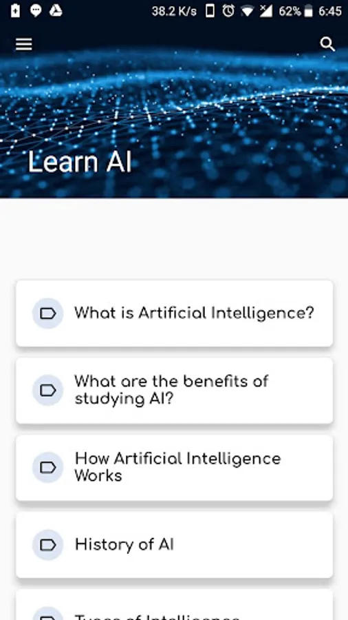 This app will give you the basic idea about the field of Artificial Intelligence. If you want to learn about AI, this is where you should start.