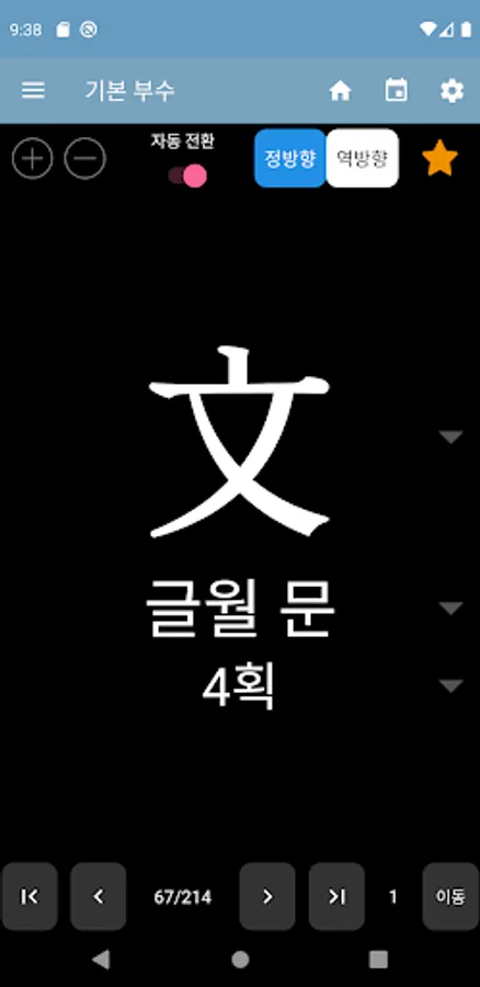 Screen automatic switching - Chinese characters are changed by automatically switching forward or backward at regular time intervals on the learning screen.