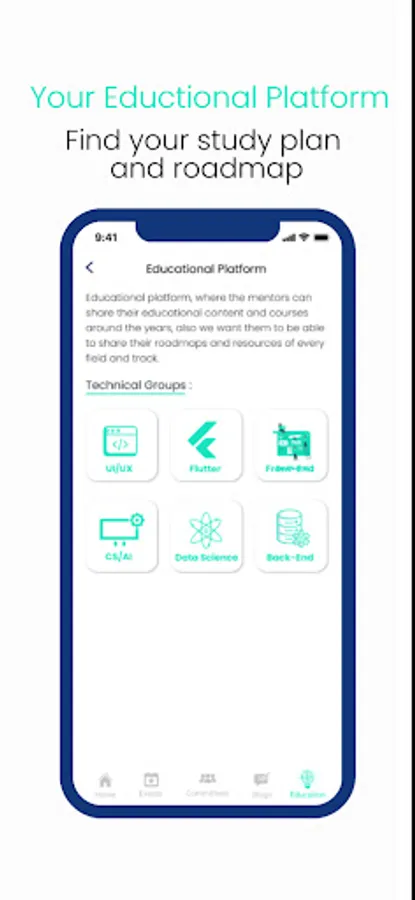 This App aims to build the knowledge base for computer science students by providing them with the latest news and activities of the organization, and by providing them with the necessary skills through the courses and workshops that the organization provides.