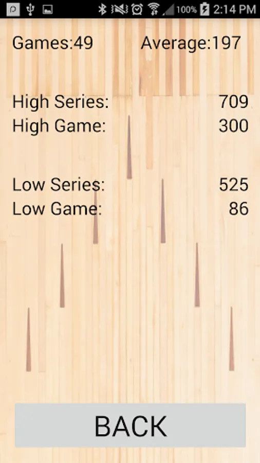 On the Stats Screen it will tell you the amount of games you have bowled, your average, your high series, your high game, your low series, and your low game. If you click the "Back" button it will take you back to the Scores Screen.