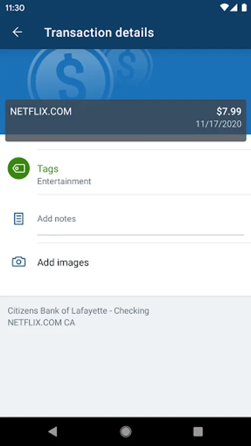 -Keep your transactions organized by allowing you to add tags, notes and photos of receipts and checks.