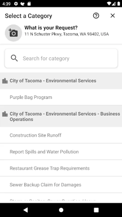The TacomaFIRST 311 app is developed by SeeClickFix (a division of CivicPlus) under contract with the City of Tacoma