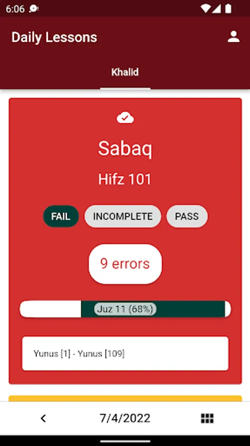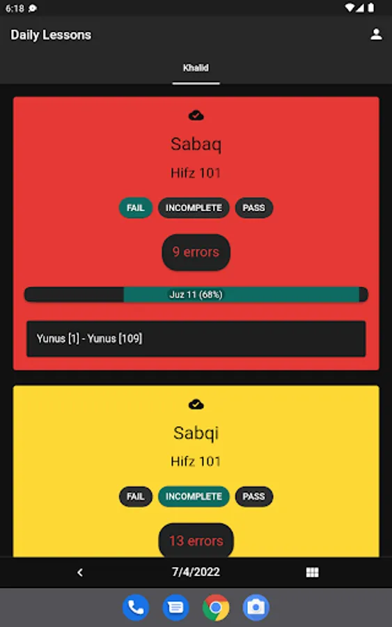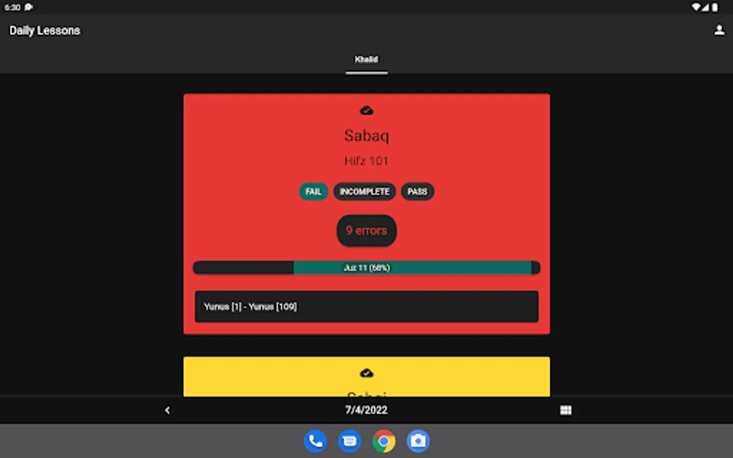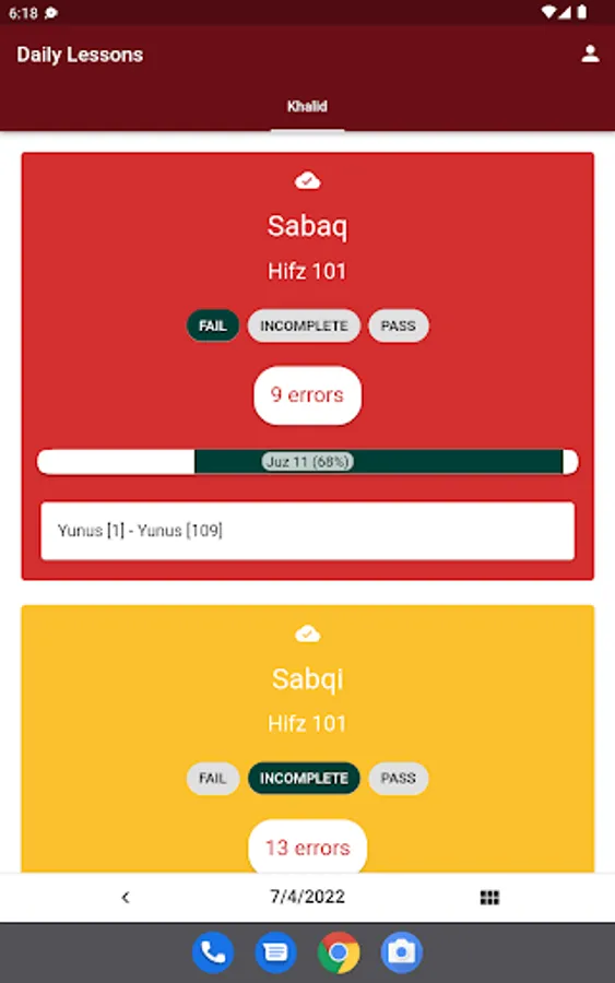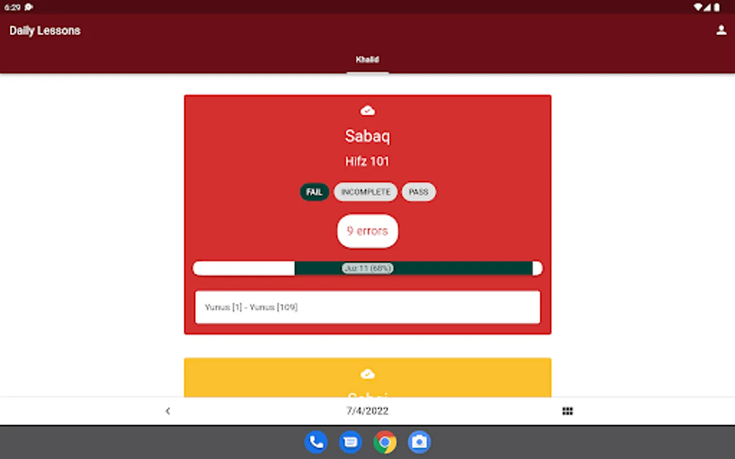 Sabaq is a simple, easy, and intuitive school-based app designed for parents and teachers of CJIIS for quickly tracking and sharing a student's Qur'an progress.