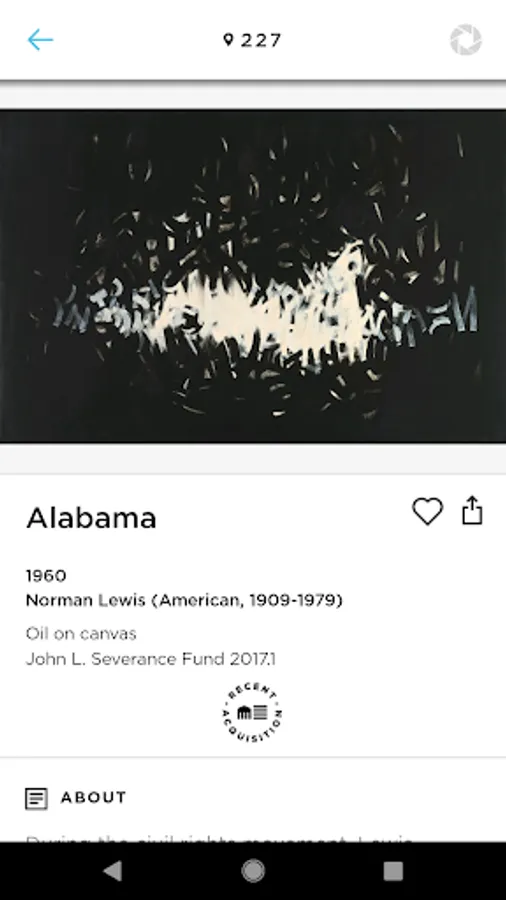 · Scan: Using innovative image-recognition software, ArtLens App seamlessly recognizes a selection of two-dimensional artworks and provides additional curatorial and interpretive content.