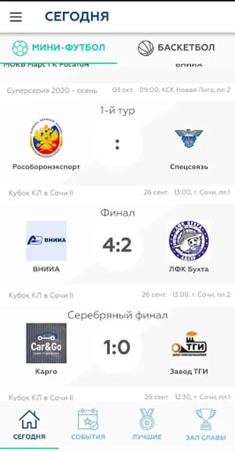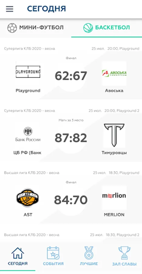 Приложение позволяет выводить ближайшие, прошедшие матчи по мини-футболу и баскетболу, выводить полную статистику по турнирам, игрокам командам, формировать список топ-команд и игроков по различным амплуа и др.