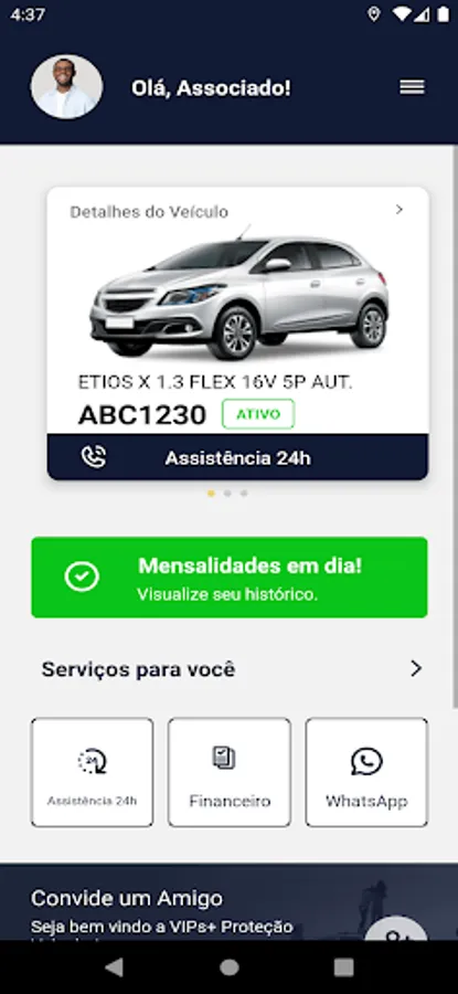 With our associated app, through the Fale Conosco menu, you can stay on top of the association's news. Get access to your current slip or 2nd copy with practicality and agility. Our application allows you to make various requests, such as: 24h Assistance, Theft and Robbery, Accredited Workshops and much more.