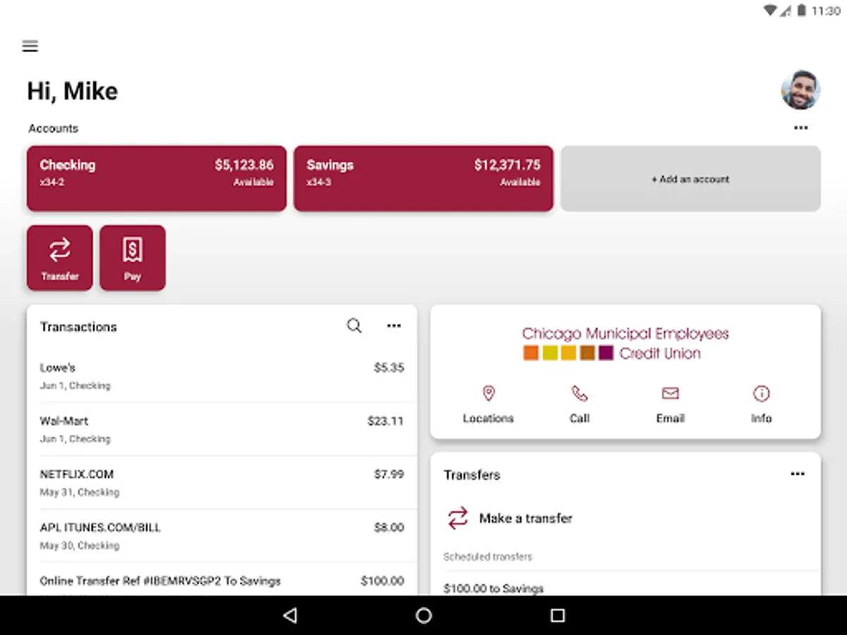 Contact: Locate ATMs or branches and contact Chicago Municipal Employees Credit Union customer service directly from the app.