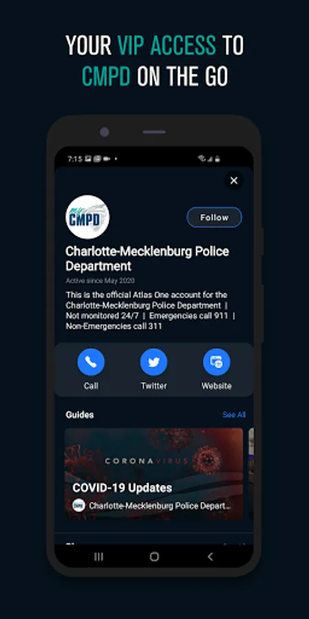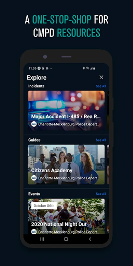 The Charlotte-Mecklenburg Police Department (CMPD) is proud to launch MyCMPD, an interactive public safety mobile app for Charlotte-Mecklenburg residents that provides updated, accurate, and vetted information at your fingertips. Get notified of police activity and emergencies in your area in near real-time, view crime in your neighborhood, access important CMPD information and resources, and most importantly, stay safe!