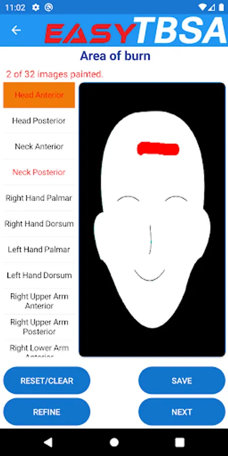 Calculate the TBSA burned by entering the patient’s age and weight and the shading of burned areas on representative body part maps.