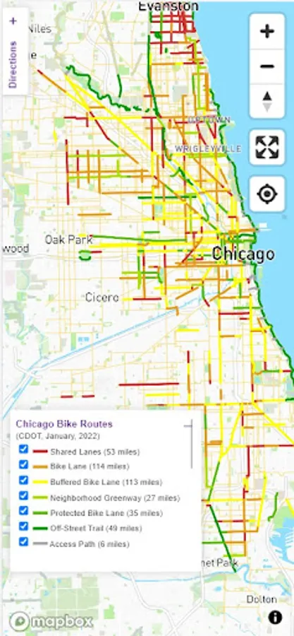 The Chicago Bike Routes app shows the safest bike routes in Chicago by displaying the Chicago Department of Transportation bike routes by type, the Mellow Chicago Bike Routes developed by John Greenfield for the Chicago Reader, as well as suburban OpenStreetMap routes and paths to allow you to navigate safely to your destinations. The app also shows CDOT street work projects, Ward and alderman information, as well as directions, trip time and mileage, route tracking and sharing.