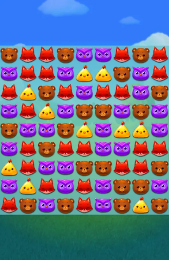 经典的消消乐小游戏,可爱的动物头像,三连即可消除。