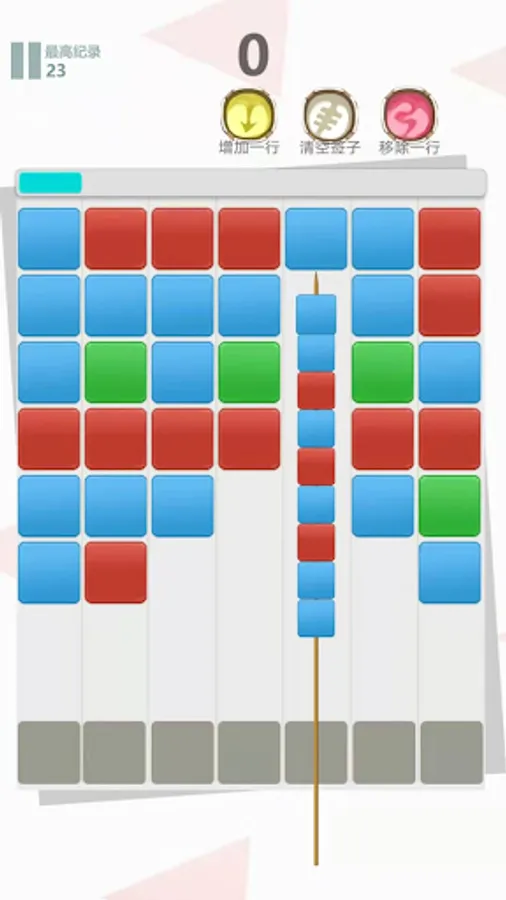 Keep touching the screen to move the bamboo stick up, and 3 squares of the same color can be eliminated.