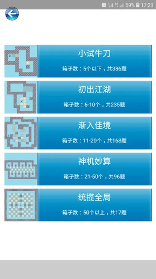 智能推箱子收录了一千多个经典的推箱子题型,并按照难易程度分为5个类别,适合各种水平的玩家。与常见的推箱子软件不同,本软件不仅提供了推箱子的各种玩法,还提供了智能计算功能,玩家在无法得到正确解题路径时,可以发起通关秘笈,由软件提供最佳路劲,指明运动方向。