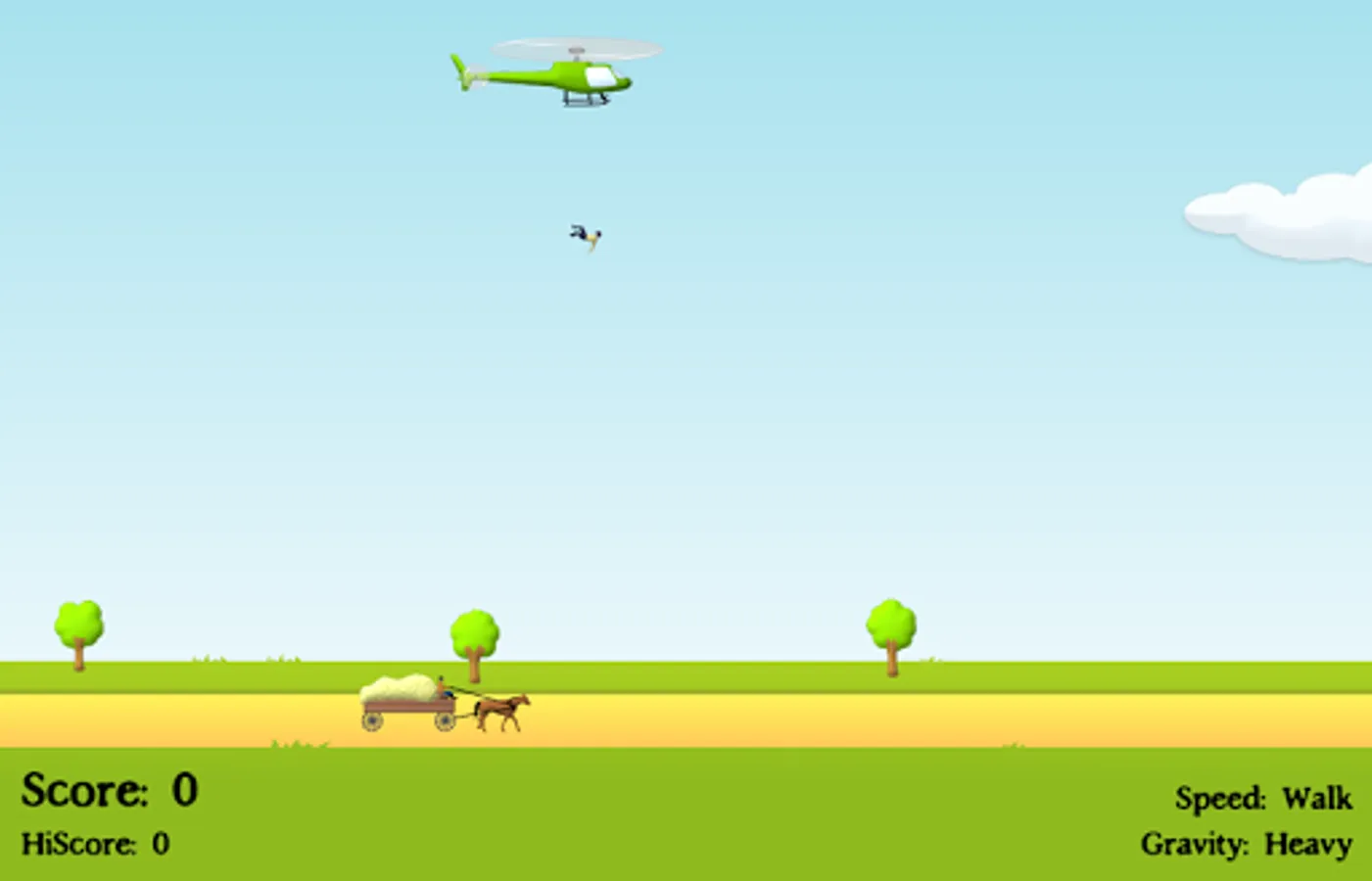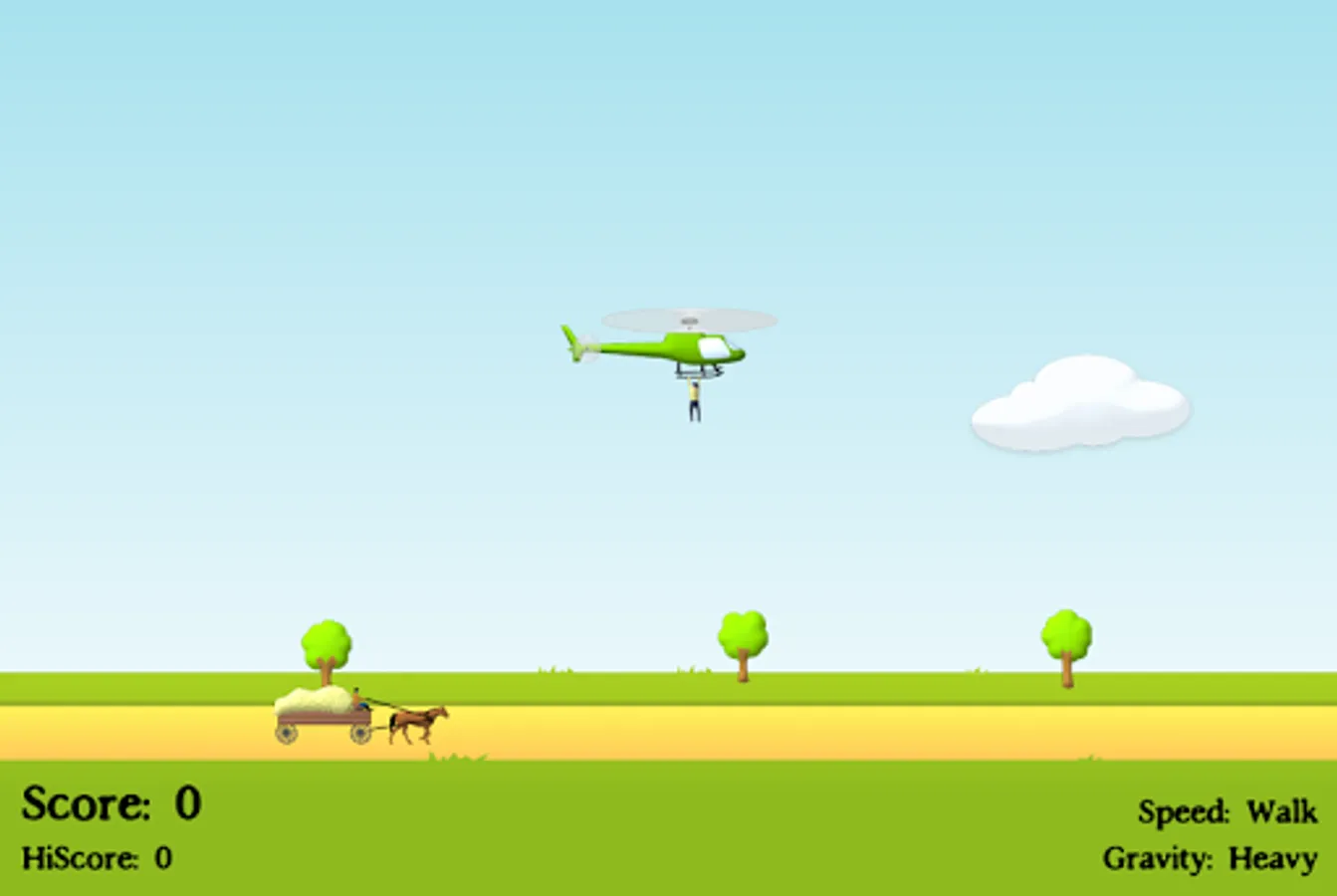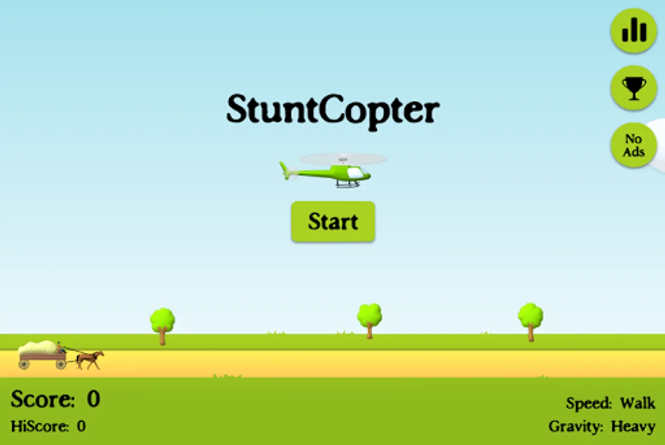 Pilot a helicopter by tilting your device and tap to send the stunt man flying. If he lands on the hay wagon, then you get points and you get to keep going!