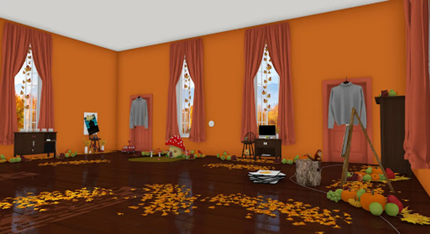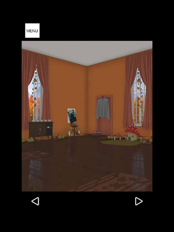 You are in a house where autumn leaves, mushrooms and squirrels are lived.