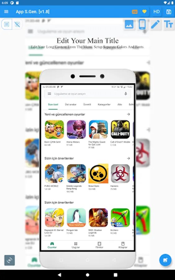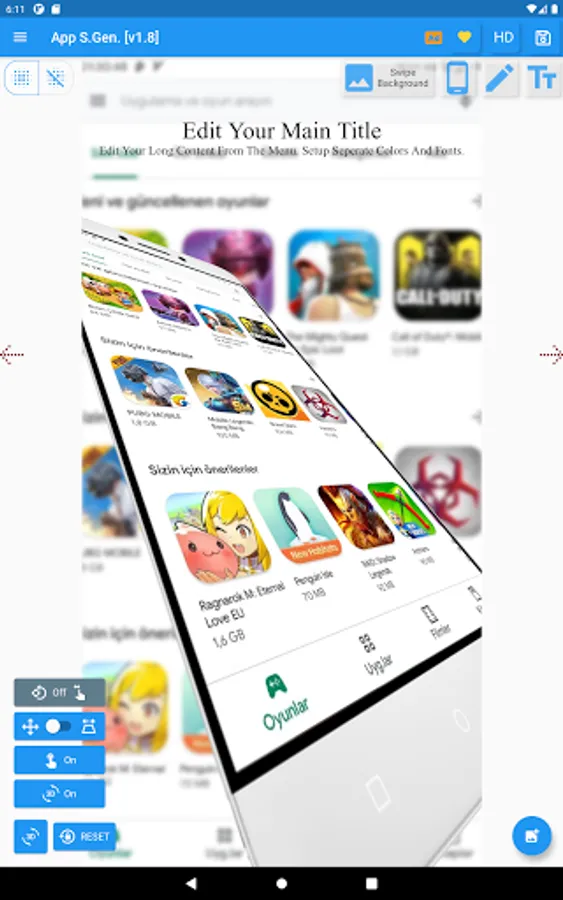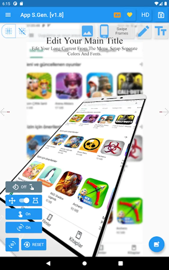 App Screenshot Mockup Generator 3D & Picture Maker, lets you easily wrap & merge your app screenshots in 3D or 2D real and natural looking device mockups. Beautiful and efficient interface lets you merge your background, device frames, titles and text into ready to upload pictures. And absolutely FREE!