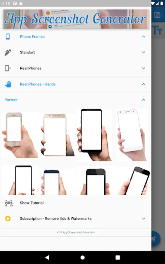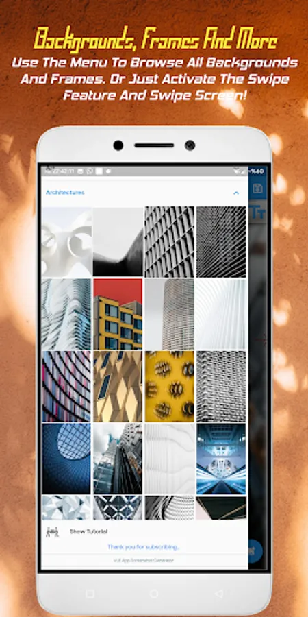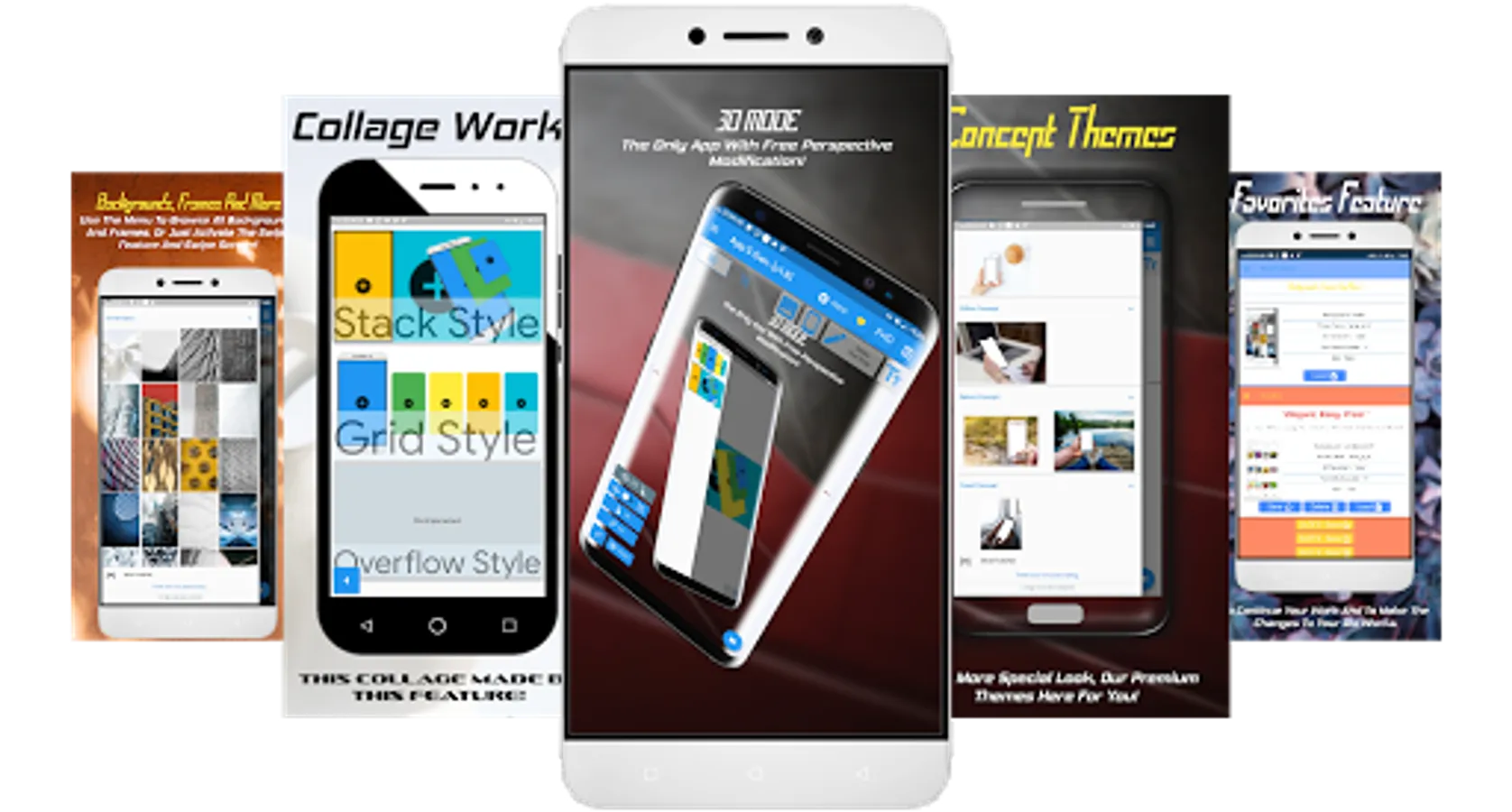 4) Phone frames ; Pick any phone frames you wish. The only App with realistic and perspective frames available!