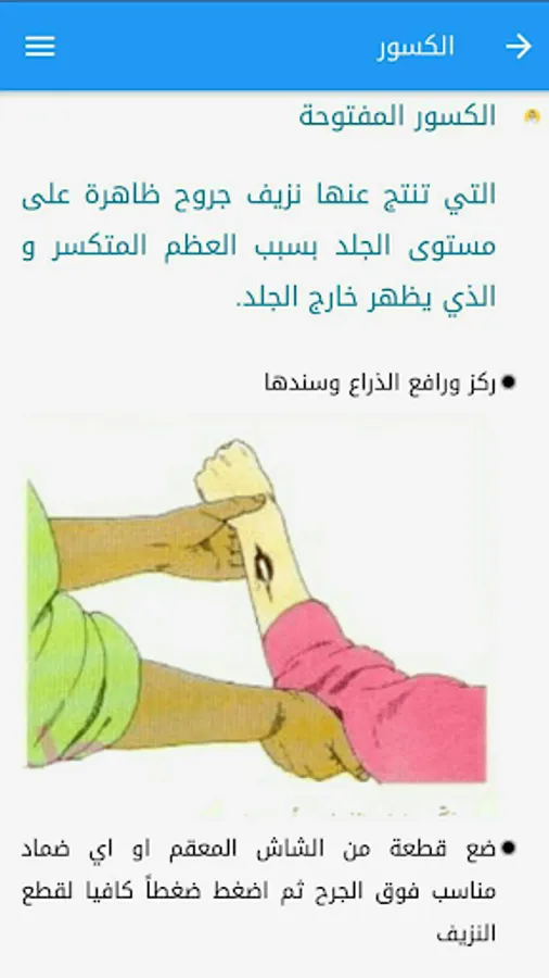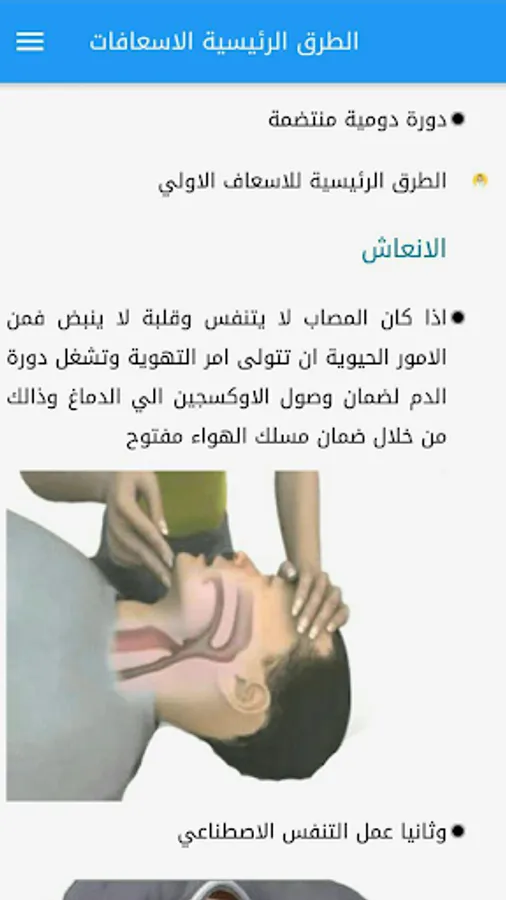 In this application, the user will find tips that maintain the safety of people in all situations and provides evidence of first aid in common cases such as drowning, burns, bleeding, bone injuries and bites, in addition to some special cases such as ear bleeding, nose bleeding, limb amputations in accidents, and also psychological emergencies such as trauma .