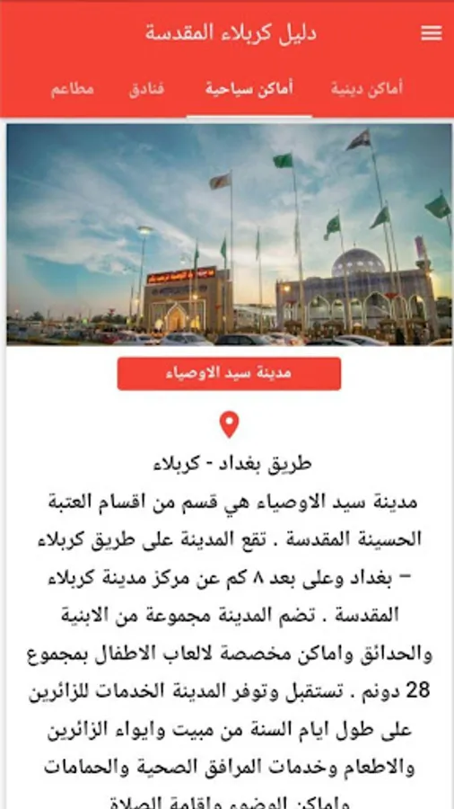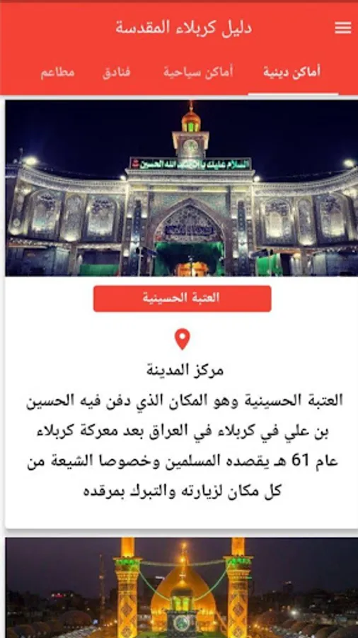 An application that shows the aesthetic of this city by highlighting some of the places and things that Karbala Governorate is known for and knowing its history and monuments