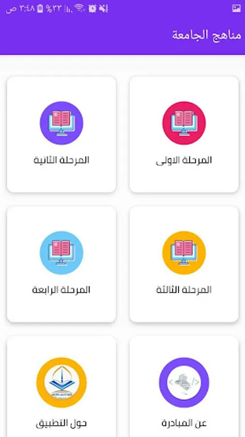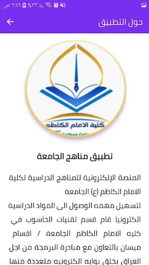 To facilitate the task of accessing the study materials electronically, the Department of Computer Technology at the College of Imam Al-Kazim University / Maysan departments in cooperation with the Programming Initiative for Iraq has created a multiple electronic portal, including electronic applications that were created in cooperation with his request the department and other applications will be published to the rest of the departments to develop the electronic portal For the departments of Maysan and through this application, the student can access the study materials in an easy way and know the special units for each subject