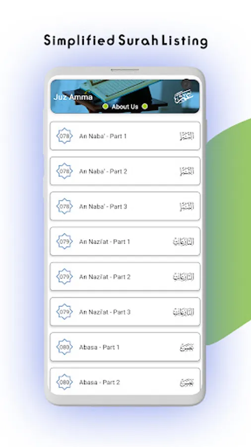By Opening AlQuran Tafseer Pashto (تفسیرالقرآن پښتو) application, tap on Get stated button. Then you will see all the Surahs (Verses) of Quran. Tap on any of them the player will be shown and started. AlQuran Tafseer Pashto can be played in background and can be handled from notification panel.
