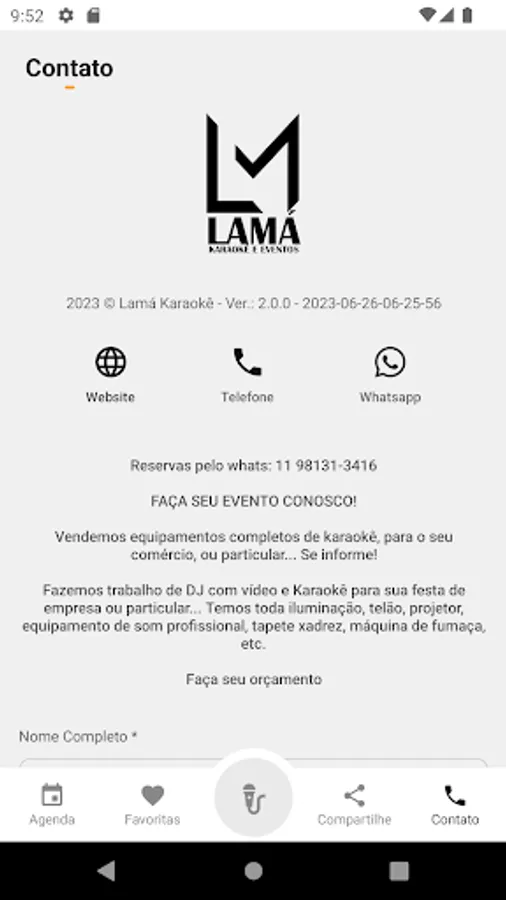 Download our Lamá Karaoke app in the Play Store, and have an always up-to-date list of the music we make available at our Karaoke events, with the ability to add them to your favorites. Also keep an eye on our calendar of events and contact information and budget.