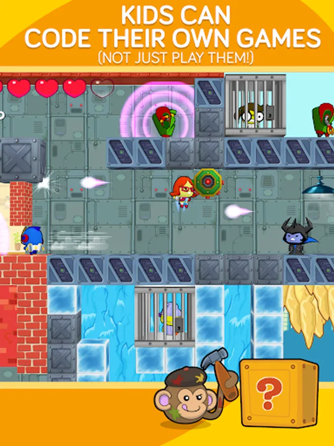 * Learn programming concepts through coding games for kids & use them to code their own games & interactive stories