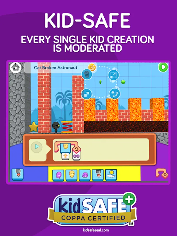Every story is moderated before it’s published to ensure the safety & privacy of all kid coders. Kids can play programming games knowing they’re safe at every step.