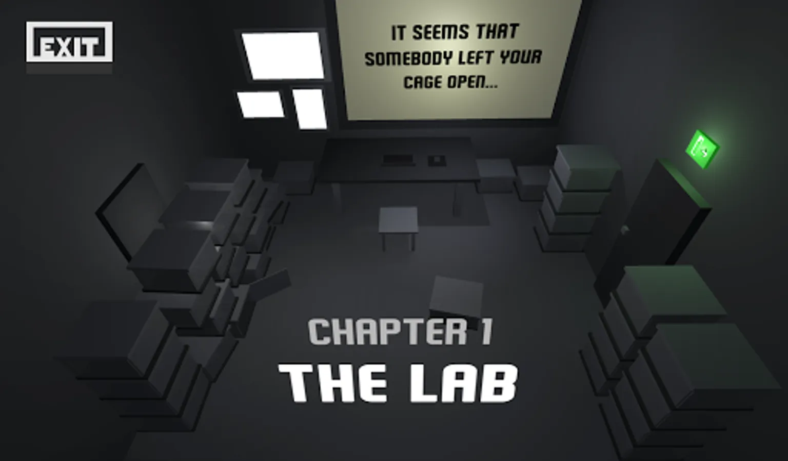 You wake up - all you knew so far were the blurred outlines you perceived through the milky glass of your cage. But suddenly your door is open. What do you do? Do you want to go on living a dreary life as a lab rat or do you dare to escape?
