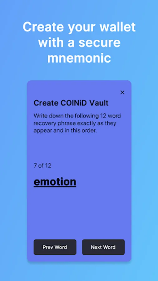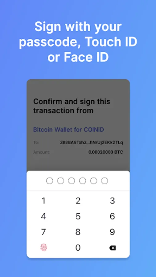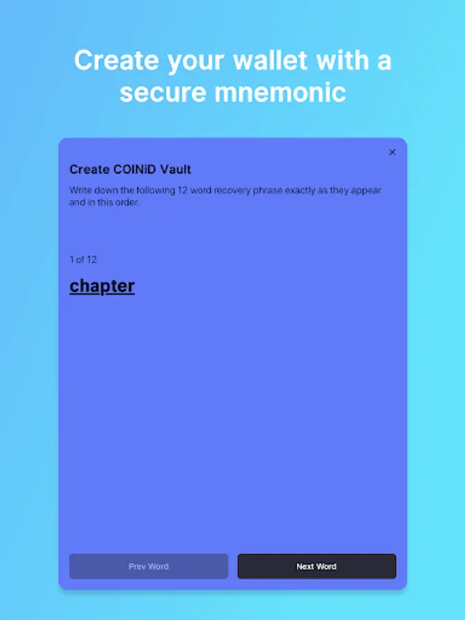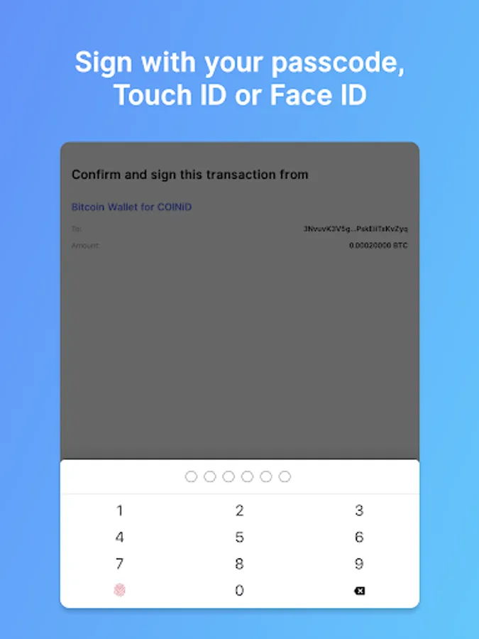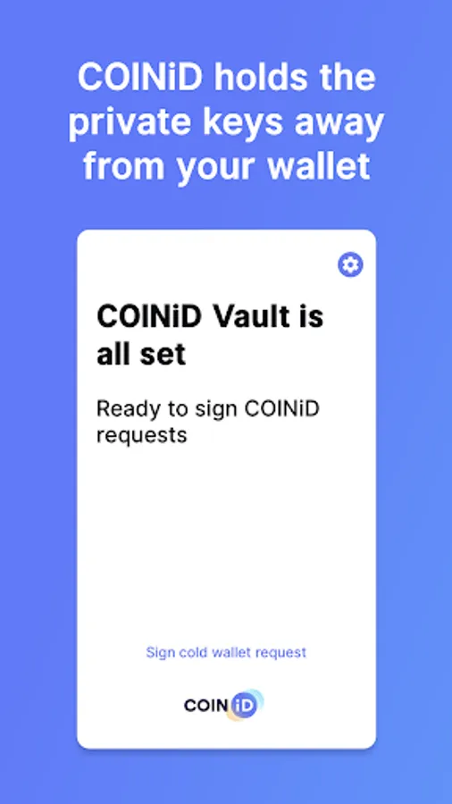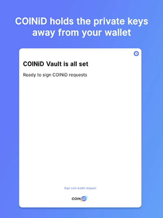 COINiD Vault stores your private keys away from your COINiD Bitcoin Wallet and is used to sign transactions.
