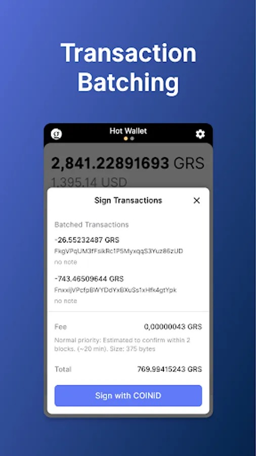 - Transaction batching. Save space on the blockchain and pay lower fees!